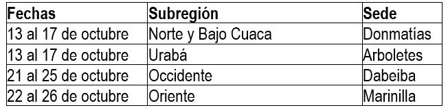 Tras la realización de los zonales de Valle de Aburrá en Bello, Suroeste en Jericó y Nordeste – Magdalena Medio en Cisneros, para llegar a la final de los 48º Juegos Deportivos Departamentales “Indeportes Antioquia” 2025, en Copacabana y Girardota (24 de noviembre al 5 de diciembre), quedan por realizarse cuatro zonales clasificatorios incluido el de Urabá. El cronograma de esos zonales es el siguiente: